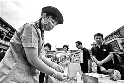 家住东城区赵家楼社区的薛奶奶今年七十多岁了,7月7日早上,薛奶奶像往常一样买完菜回家,在小区门口看到了几位穿着制服的工作人员在摆放着各种各样的仪器设备。了解到是建国门食药所的工作人员来为居民做食品安全检测,薛奶奶高兴地说:“这个好,等我回家拿米去!”