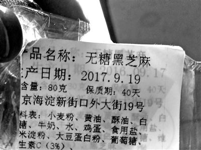 无糖黑芝麻月饼下层标签的生产日期为2016年9月
