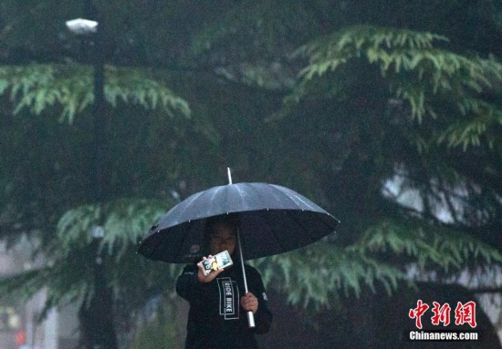 北京市民在雨中前行。 中新社记者 刘关关 摄