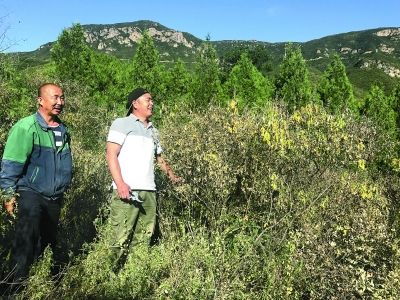 记者跟随李继高、李继奇兄弟一路爬到林子的制高点,李继高说:“从这个山头一直到那个山头的山下,这一整片林子都是当年我父母种下的,每次我和我哥上来剪枝养护,看到这连绵的绿色真是从心眼儿里觉得特别有成就感。”