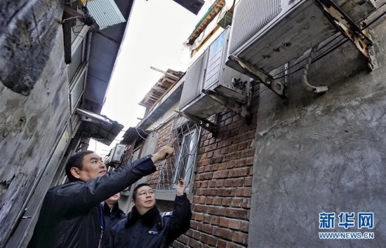 11月20日,北京市丰台区东高地街道安全办工作人员在街巷内检查用电安全隐患。当日,北京市丰台区东高地街道的干部职工深入大街小巷和居民家中,逐一排查用电用火、杂物堆积等安全隐患,保障市民安全过冬。 新华社记者李欣 摄