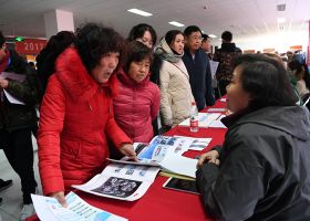 这是在四达时代招聘台前发生的对话。来自辽宁的李女士在登记表上写上了自己的联系信息。李女士之前做早教行业,就暂住在工作地附近的公寓房里,目前她住在朋友家。“这次找工作,我还是比较关注岗位技能培训,希望能提高自己的就业技能。”李女士说。