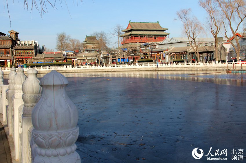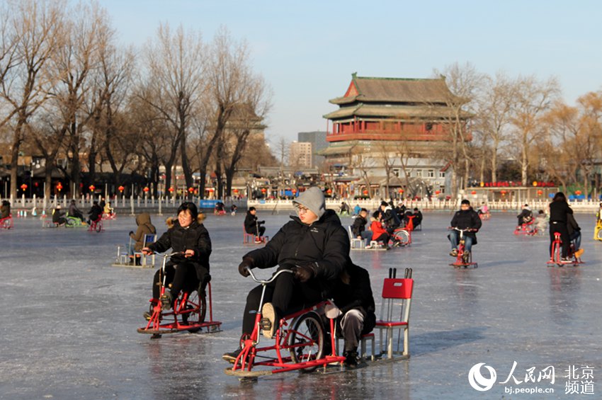 3日,在接近零度的气温下,不少市民和外地游客们在什刹海滑冰、冬泳或欣赏冬日的后海地区美景。 人民网池梦蕊 摄