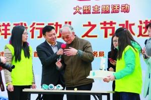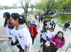 3月22日,市水务局在紫竹院公园组织“蓝丝带——走水行”活动。来自高校的节水护水志愿者以及市民网友代表,与水务工作人员一起,佩戴蓝丝带,共同绕湖一周。