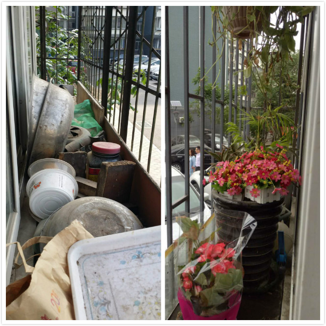 阳台、楼道环境关乎每家每户,环境的整洁和美观,不仅影响着住户的生活质量,也直接影响楼院的环境质量。“我们院是个老小区,护栏里大家都习惯堆放点儿用不上的东西,老人又都舍不得扔,从里面看挡阳光,从外面看真是乱,政府都给我们把楼院环境改造的挺好,可这杂物一挡,也就美不起来了,最重要的是还存在安全隐患。”社区居民李秀敏说。