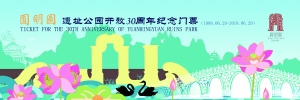 6月29日是圆明园遗址公园开放30周年纪念日,今天,前5000名现场购买圆明园门票的游客可获赠一张“圆明园遗址公园开放30周年”纪念门票(见图)。