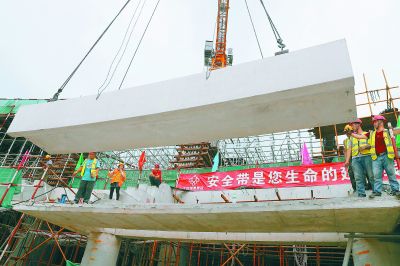 “我们总共要吊装1911块以再生骨料为原料之一生产出的预制看台板。”施工方北京城建集团国家速滑馆项目常务副总经理张怡告诉记者,由于每一块预制看台板的尺寸都不相同,所需安装的位置也是,的,因此,在工厂生产出来时,每一块预制看台板端头都添加了一个二维码,重量、尺寸、吊装位置、生产日期,工人只要扫一下二维码,所有信息便能一目了然,以免弄混搞错。“从空中放到指定位置之前,我们都会先利用四边的测量控制线对土建的偏差进行精准矫正,和控制线吻合了,再慢慢放下来,一块预制看台板的安装就得1个小时。”