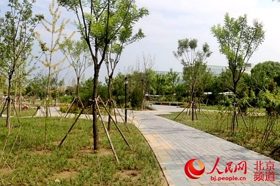 中国银行城市森林公园设计融入古典元素,园内能够望山、望水、望绿林。人民网 孟竹 摄