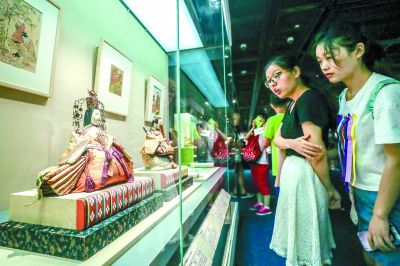 昨天,首博展厅内,参观者在日本古代女儿节人偶前驻足。本报记者 武亦彬摄