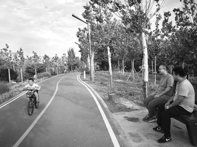 本报讯(记者 陈强)昨天下午,一场秋雨过后,记者来到凉水河边,站在用透水沥青铺设的步道上远望,一片郁郁葱葱:白色的大滨菊、紫色的千屈菜、金色的金光菊,还有绿油油的嫩草,蓝天白云下,宽4.5米的红色骑行道仿佛一条彩练,随着微地形的起伏,将这一切串联起来,风景美如画。