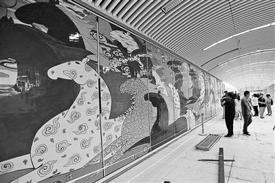 北青报记者乘车体验时注意到,8号线各站主体施工已经完成,正进行,的装饰阶段,各站的特色也不尽相同,充分参考了中轴线的文化特色和所在车站的地域特点。火箭万源站由于紧邻火箭研究院,整个站厅层以深蓝色的太空为主题,包括上万块马赛克拼装而成的宇宙穹顶和星球,以及线条感十足的弧形一体灯,未来墙壁上还将装饰上火箭模型。天桥站的站厅层用两幅巨型壁画展现天桥的历史文化,其中西侧壁画的主题为“天子赴祭”,表现了皇帝率众赶赴天坛祭拜的宏大场景;东侧的主题是天桥遗韵,展现了天桥的小吃、杂货买卖和杂耍与民间艺术。木樨园站的站厅层,一幅彩绘的万马图格外引人注目,讲述了此地在清代曾是宫廷马匹饲料场所的历史渊源。