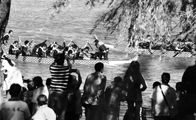 北青报记者在圆明园福海北岸看到,众多游园游客被热闹的竞演场面吸引,纷纷驻足观看。“今天是周末,阳光明媚,湖边景色优美,又有体现咱们中华民族文化特色的龙舟表演,真是大饱眼福。”一位游客高兴地说。龙舟竞渡是民间传统水上体育娱乐项目。据了解,清代皇帝经常在圆明园的福海举行龙舟竞渡并临水观看。清代龙舟竞渡线路长约600米,南北方向,竞渡龙舟经过观礼台前时,必须“停桡片刻留”,以示受阅致礼。“作为清代龙舟竞渡的举办地,在福海举办首届,龙舟竞演活动就再适合不过了。”圆明园管理处相关负责人表示。