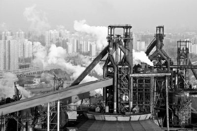 停产前的首钢老厂区腾起浓浓的烟雾、蒸汽,遮盖住人们的视野。 (资料片) 本报特约摄影 李文明
