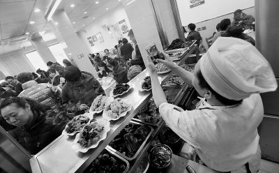 前天晚上8点,当其他门店渐渐安静时,虎坊路上的热盆景却越来越热闹了。近20名顾客站在寒风里,更早到来的顾客则填满了店里的过道。正在用餐的顾客一边吃着家常菜,一边唠家常。糖醋里脊、宫保鸡丁……各种菜品摆在桌上,看起来格外诱人。