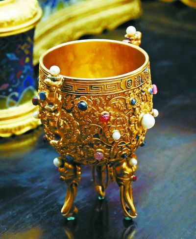 清代皇帝新年开笔礼上使用的珍贵文物金瓯永固杯。