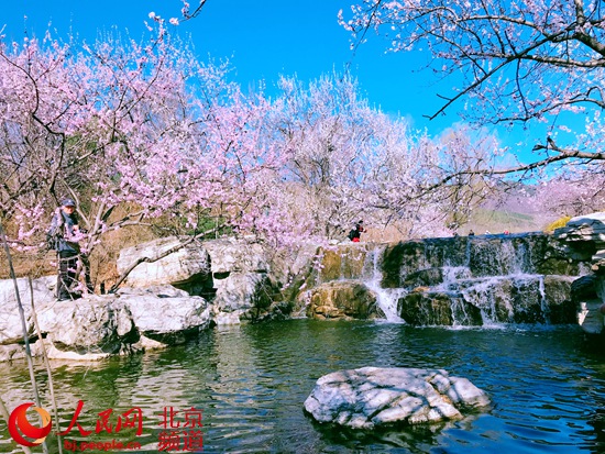 今天上午,记者在北京植物园曹雪芹纪念馆西侧的山桃花溪景区看到,这里已经进入最佳观赏期。这里青山环抱、春水荡漾,数百株盛放的山桃花交相辉映,一泓溪水沿石阶奔流而下。游历其间,仿佛步入一幅优美的春日画卷。