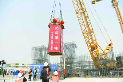 昨天上午10时许,北京丰台站改建工程新建站房第一根钢柱开始吊装,新丰台站钢结构主体工程施工拉开序幕。