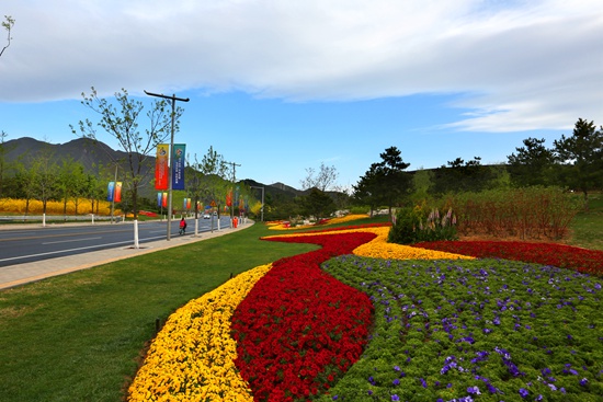 如今前往雁栖湖,可谓一路花香。怀柔“南大门”,立体花坛“鸿雁展翅 群贤毕至”,烘托出热情迎宾的气氛。驶上联络线高架桥,1.5万组矮牵牛花箱“绽放”在道路两侧的护栏上,李子色、粉色、橙色、蓝紫色、苹果色、珊瑚色,12公里的路段,每隔一段距离,以颜色塑造大尺度节奏迎宾序列,形成了绚丽多彩的迎宾大道。