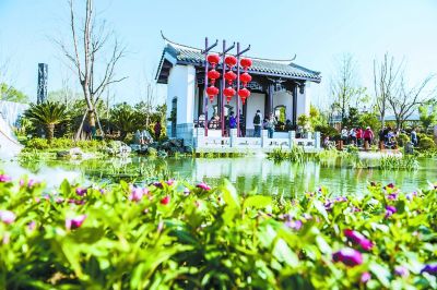 福建园以三坊七巷剪影墙、亭台水榭、人物雕塑为主景,让游客感受到福建深厚的文化韵味和独特的园林艺术。本报记者 潘之望摄