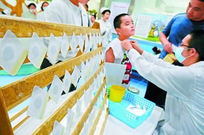 “由于三伏期间人体皮肤温度,、湿度,,毛孔开放程度,。而孩子脏器轻灵,肌肤比较薄嫩,此时选取特定穴位进行贴敷,所贴药物最容易经皮肤渗入穴位经络,通过经络气血直达生病部位,减少秋冬季节呼吸系统疾病的发生和减轻病情,同时鼓动人体阳气,对增强孩子抵抗力有一定帮助。”李亚男说。
