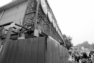 日前,天坛街道联合相关执法部门,针对天坛北门附近商家的违规牌匾、开墙打洞、违法建设等环境问题展开了综合整治。本报记者 孙戉摄