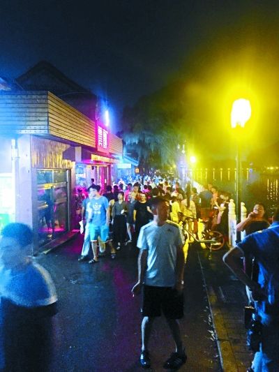 雨夜的什刹海仍人满为患