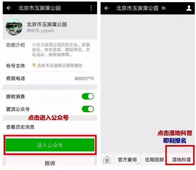 进入北京市玉渊潭公园微信平台,
