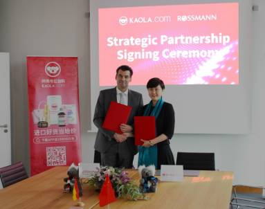 (图片:网易考拉海购CEO张蕾与Rossmann首席财务官Peter Dreher签订战略合作协议。)