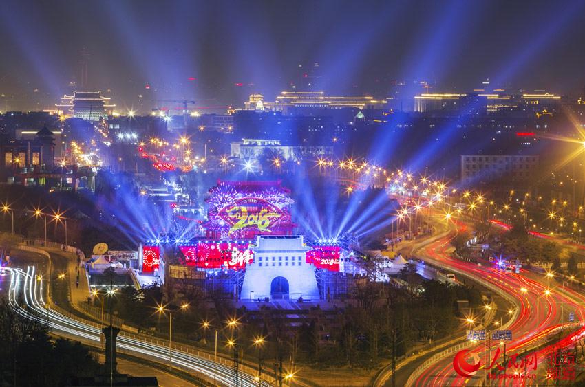 人民网北京1月1日电 (尹星云)古中轴点亮新希望,新时代开启新征程。2017年12月31日晚,由北京市旅游发展委员会主办的“2018北京新年,活动暨北京冰雪文化旅游节开幕式”在永定门公园隆重举行。活动以“走进新时代 开启新征程”为主题,国家旅游局副局长杜江、北京市副市长王宁,与来自13个国家的驻华使节、首都各行业的“北京榜样”、北京旅游行业代表、中外游客、学生和市民代表一千余人共同迎接新年的到来。
