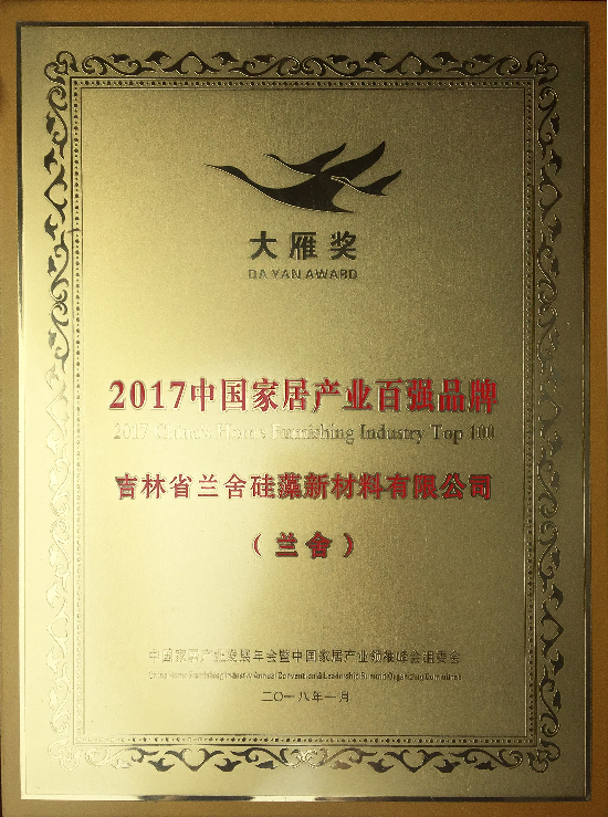2018年1月6日,第5届中国家居产业发展年会暨“大雁奖”颁奖盛典于北京国家会议,隆重举行。本次盛会由中国室内装饰协会等12家行业协会与新浪家居、乐腾家居联合主办,兰舍作为硅藻泥行业代表受邀出席,同近千位来自全国的家居行业,齐聚一堂,共话发展。在有着家居业“奥斯卡”级别的中国家居产业“大雁奖”颁奖典礼上,兰舍硅藻泥凭借环保的产品、优秀的口碑和在行业内强大的影响力,荣获“2017中国家居产业百强品牌”。