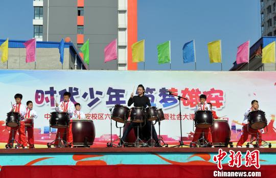 来自北京的16名学生在中关村第三小学雄安校区进行民族打击乐表演。 韩冰 摄