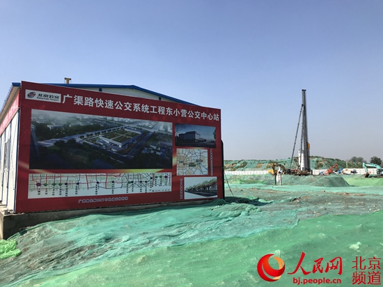 广渠路快速公交系统工程东小营公交,站施工现场。 人民网池梦蕊 摄