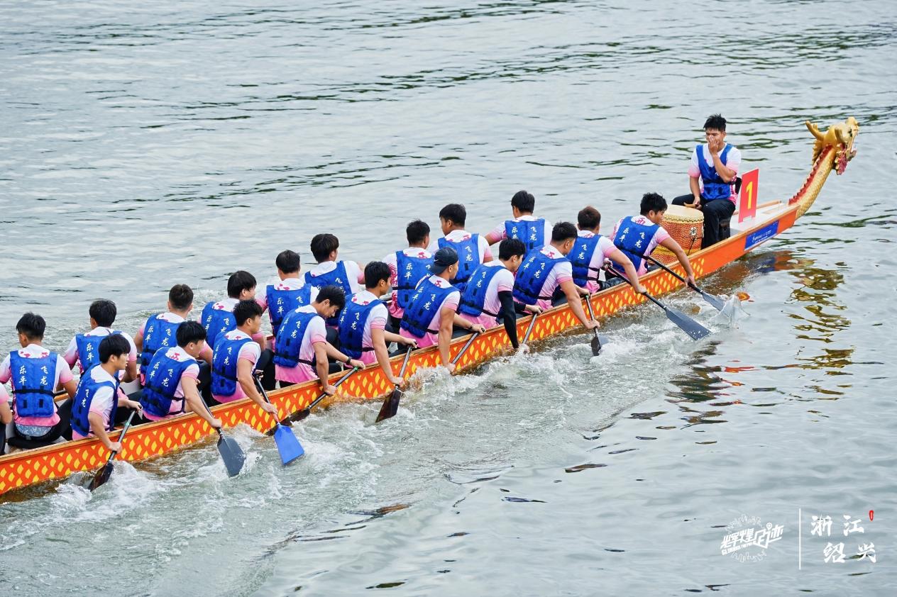 随着一声清脆的发令枪响,激昂的鼓点在鉴湖江上空回荡。22人龙舟如离弦之箭,在清澈的水面上划出一道道银弧。飞溅的浪花与岸边古朴的水乡民居相映成趣,勾勒出“百舸争流鉴江水,龙舟竞渡醉柯桥”的秀美画卷。