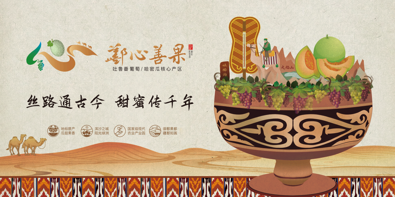 基于鄯善县优越的地理区位条件以及哈密瓜、葡萄等特色果业发展,在全面推进乡村振兴战略、聚力建设,现代农业产业园的创新实践期,鄯善县正全力打造农业区域公用品牌——“鄯心善果”。