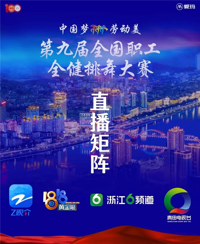 红色的血脉,在旋律中传承赓续,昂扬的斗志,通过舞姿传递。随着爱玛电动车第九届全国职工全健排舞大赛赛程的展开,一段段富有时代气息、劳动特色、行业特点的全健排舞作品,将充分展示广大职工群众热爱生活、愉快工作、崇尚艺术的时代风貌。大赛举办期间,浙江电视台民生休闲频道、青田电视台、Z视介等多家电视媒体与视频平台将现场对赛事进行直播,浙江卫视1818黄金眼栏目也将对大赛进行持续报道,让我们与爱玛电动车一道,为心中的“舞王”团队点赞、打call吧!