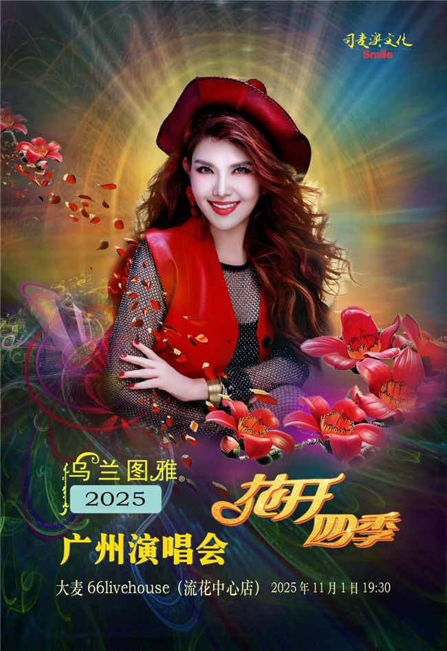 11月1日 19:30,乌兰图雅 2025 “花开四季” 巡回演唱会将登陆广州大麦 66LIVEHOUSE(流花中心店)。这场历经数余年精心打磨的品牌演出,将以北疆草原的豪迈碰撞南国花城的灵秀,四大核心看点提前解锁这场视听盛宴的独特魅力。