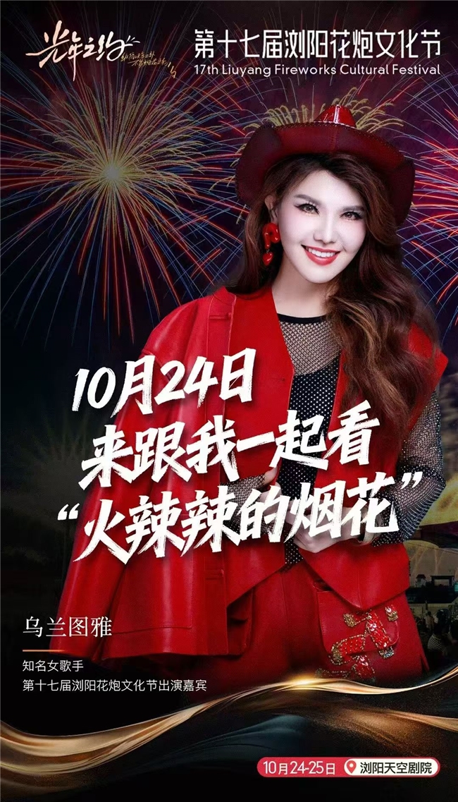 以文塑旅、以旅彰文,乌兰图雅的歌声正是这场文旅融合的生动注脚。她的歌声不仅为浏阳花炮文化节注入了民族艺术的独特色彩,更让远道而来的四海宾朋沉醉:他们既惊叹于浏阳花炮的视觉震撼,又被草原音乐的情感力量打动,在“声”与“光”的碰撞里,读懂了民族文化与地域特色的融合之美。而这份独特的体验,也悄悄为浏阳的文旅发展添了助力 —— 当“草原歌声 + 浏阳烟花”成为文化节的记忆点,更多人会因这场交融之美记住浏阳,愿意走进这片土地,感受它的文旅魅力。