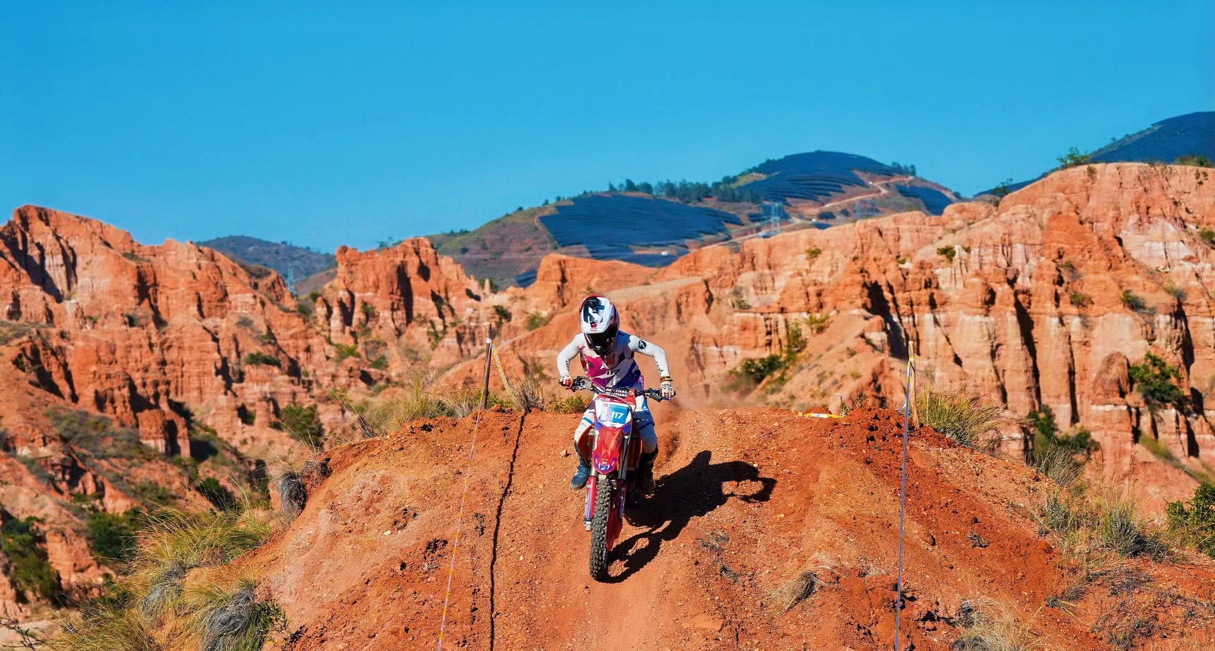 元谋作为云南省,打造的“四季康养之城”、“赛事之城”,凭借温暖干爽的气候和独特的地貌资源,已成为越野摩托运动的理想之地。本次赛事赛道依托土林自然景观打造,赛段全长7.2公里,涵盖陡坡、石头阵、木桩路等高难度障碍,不仅充分展示越野摩托的速度与激情,更为观众呈现一场人与自然共舞的视觉盛宴。