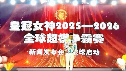 在全场,声中,启动嘉宾(全球超模大赛启动)共同上台触发启动装置。随着灯光特效与音乐的配合,“2025—2026 年‘皇冠女神’全球超模大赛” 启动画面点亮舞台,标志着这场覆盖全球的时尚赛事正式拉开帷幕,现场掌声与欢呼声持续不断。