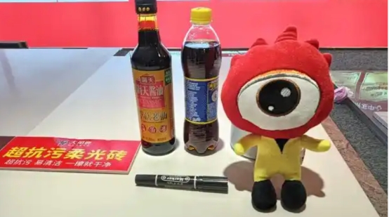 可乐测试:同样操作流程下,可乐未对砖面造成任何残留;