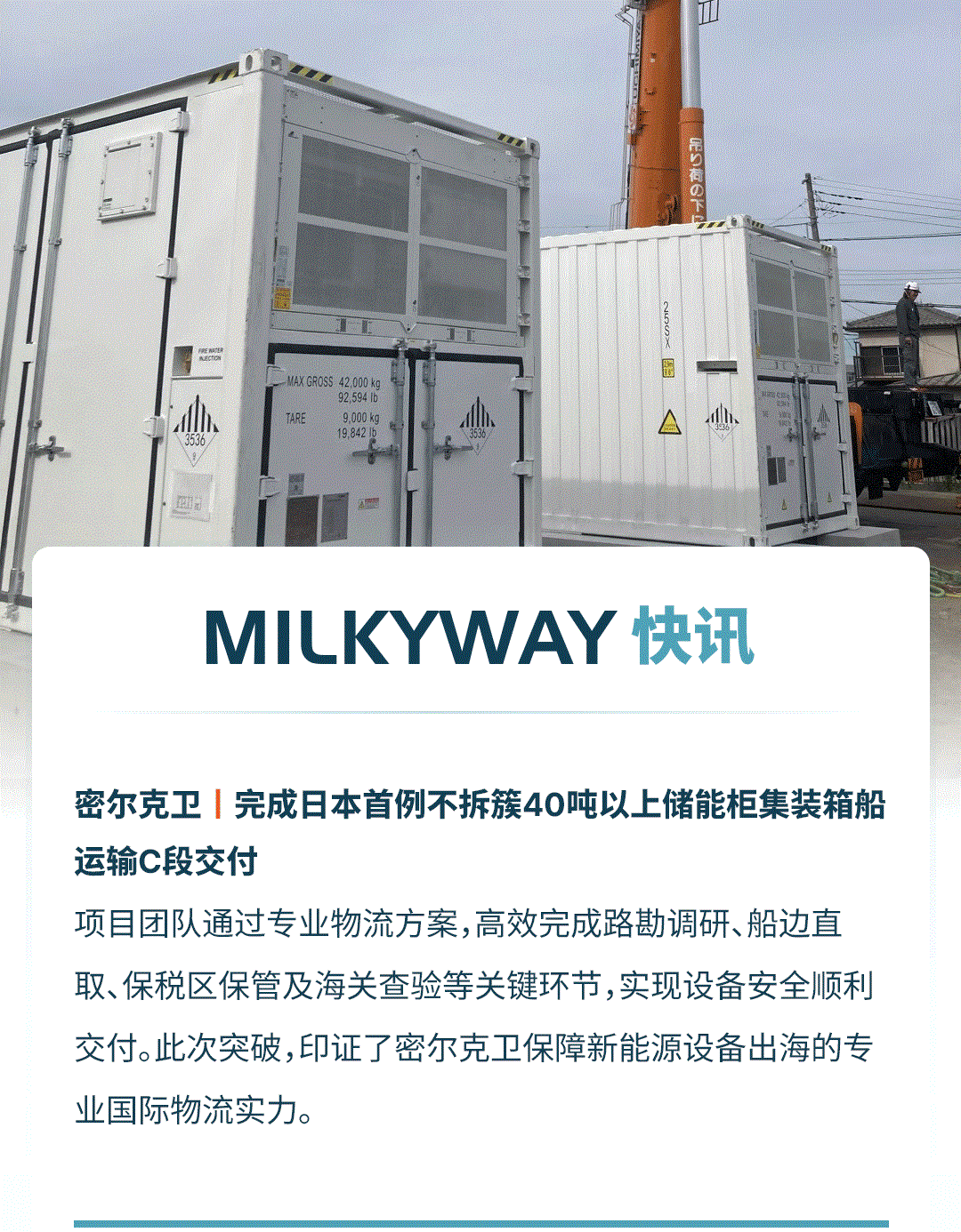 完成日本首例不拆簇40吨以上储能柜集装箱船运输C段交付