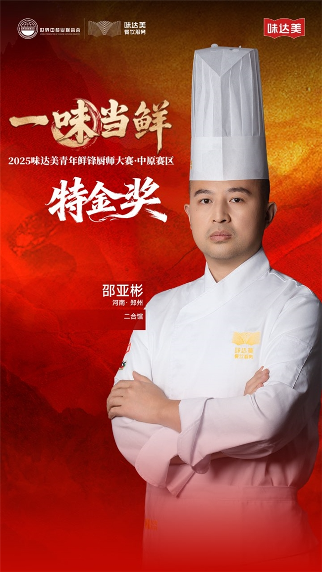 奖项:晋级决赛名额+5000元现金+世界中餐业联合会&味达美餐饮服务联名颁发的个人获奖证书&奖牌+味达美鲜锋臻味餐厅牌匾+价值万元的米其林欣厨训练营资格