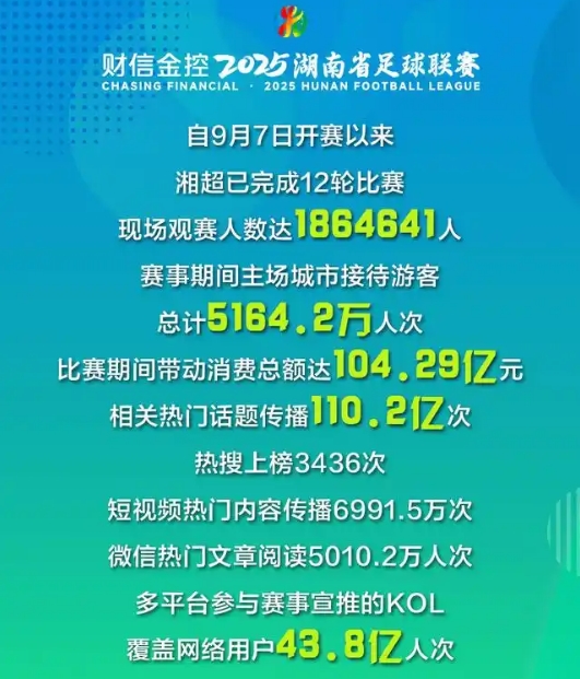 湘超前12轮数据:热门话题传播逾110亿次 带动消费超百亿元