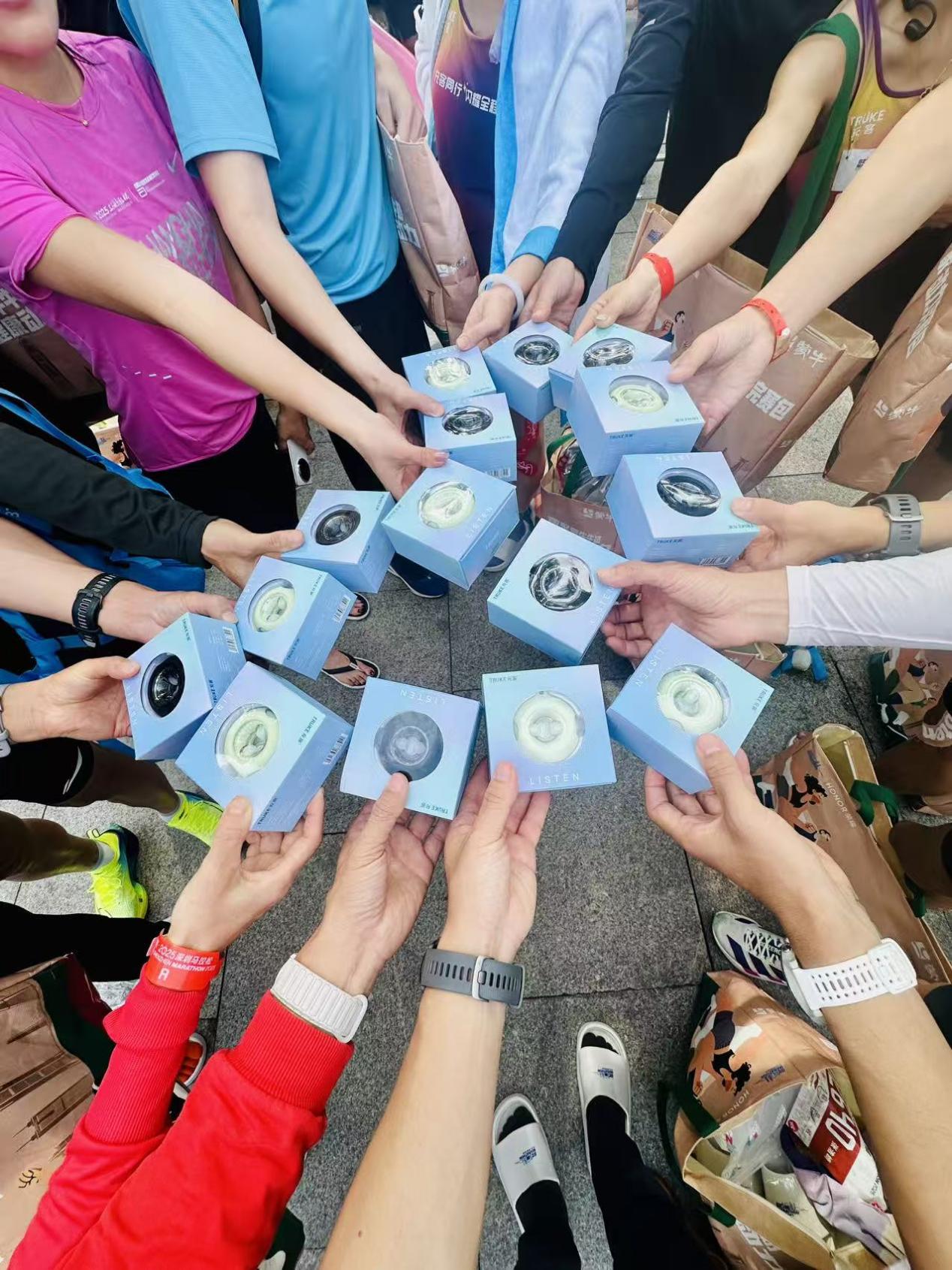 当完赛礼品 —— 充客精心准备的甜甜圈耳机递到手中时,大家更是眼前一亮。“这也太可爱了吧!拿在手里就不想放下。”这款耳机造型圆润小巧,酷似甜甜圈,凭借高颜值瞬间俘获了硬核跑者的心。
