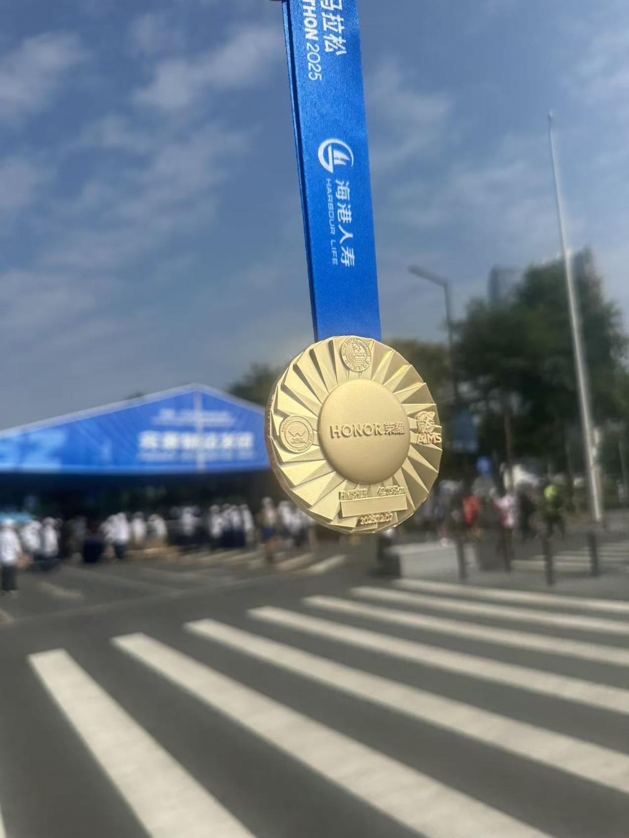 当终点拱门映入眼帘,海滨广场人声鼎沸。伴随着志愿者的呐喊与观众的欢呼,这支紫色方阵齐齐冲线,有人振臂高呼,有人激动落泪,汗水浸透的战袍下,是掩饰不住的激动与荣耀。