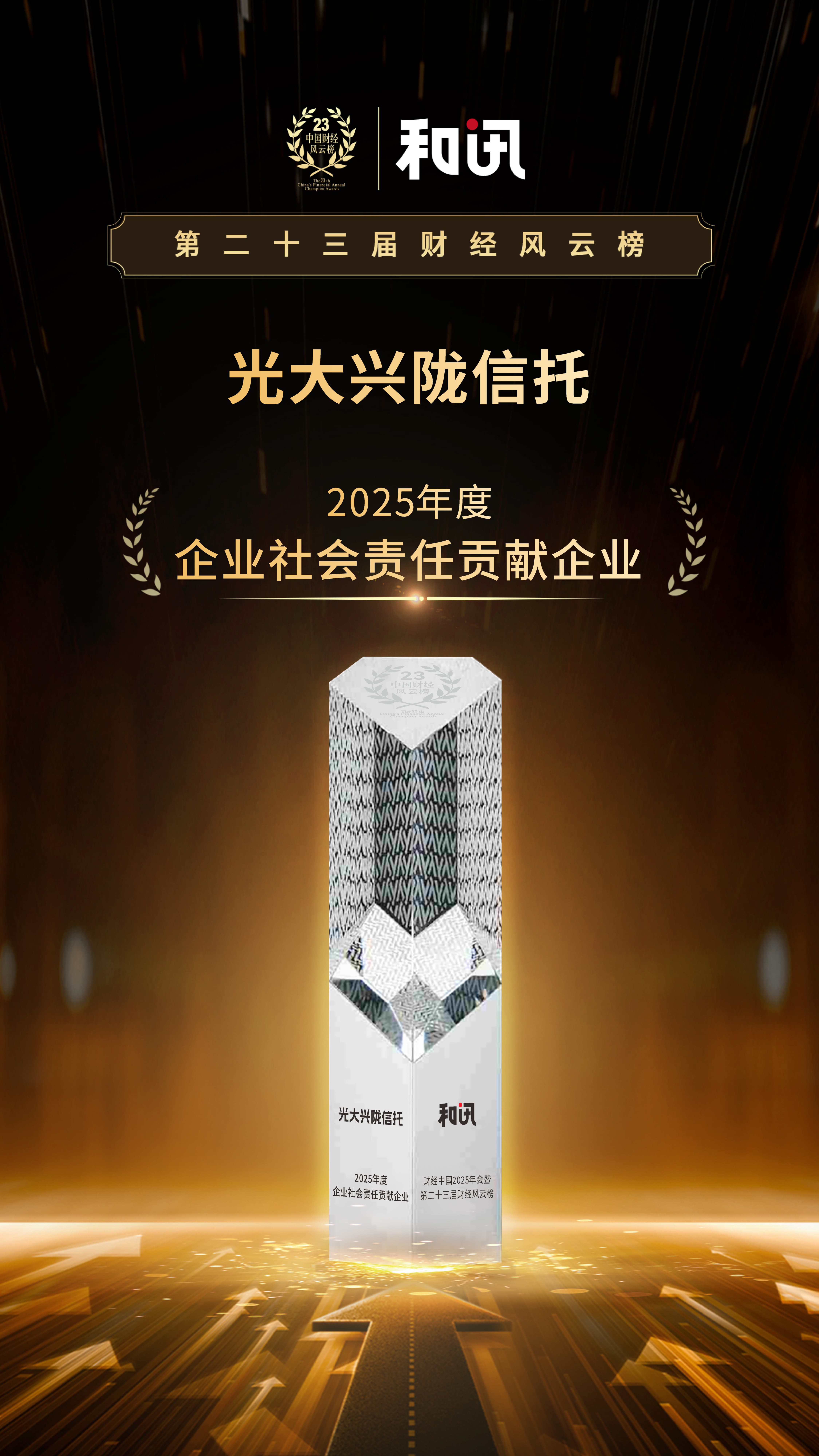 12月7日,由联办集团、和讯联合主办,财经中国会承办的「财经中国2025年会暨第23届财经风云榜」,以社会责任贡献、生态环境维护、内部治理优化等为纬度,对过去一年ESG表现优异的企业进行表彰,光大兴陇信托获得“2025年度企业社会责任贡献企业”。