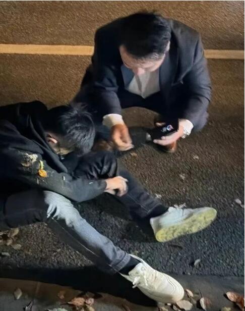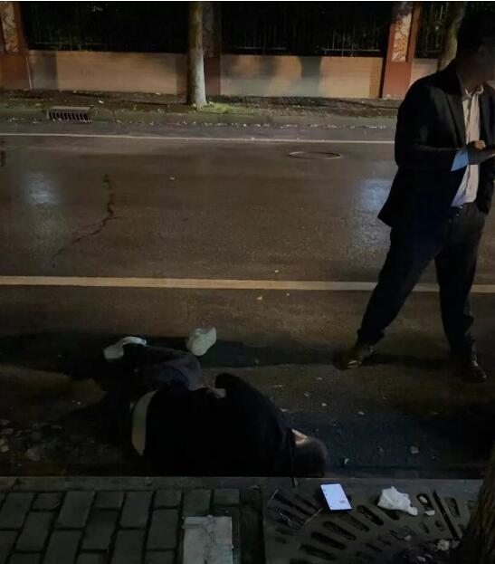 事发当晚,淅淅沥沥的雨水让路面湿滑,杨帅与任俊竹骑行至某路段时,发现路边蜷缩着一团身影。凑近查看后发现,该男子浑身沾满呕吐物,已失去意识,而周边车流不息,男子随时面临被车辆碰撞的风险。两人当即停车,在确认男子无明显外伤后,合力将其转移至人行道安全区域。