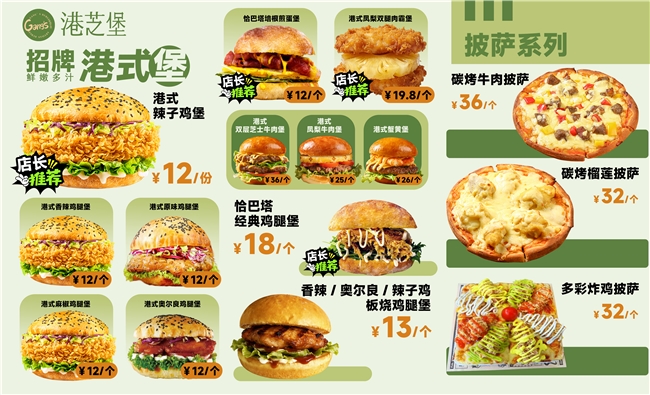 港芝堡,家专注于创新“中式手作汉堡”的餐饮品牌运营企业,正以其独特的产品和运营理念,引领着新中式快餐的新风尚。品牌以汉堡快餐店为主营业务,推出了多款以港式风味为特色的汉堡产品,如港式牛肉汉堡、港式鸡肉汉堡等, 港芝堡中式汉堡、港芝堡炸鸡汉堡、 港芝堡港式汉堡 等等 深受消费者喜爱。