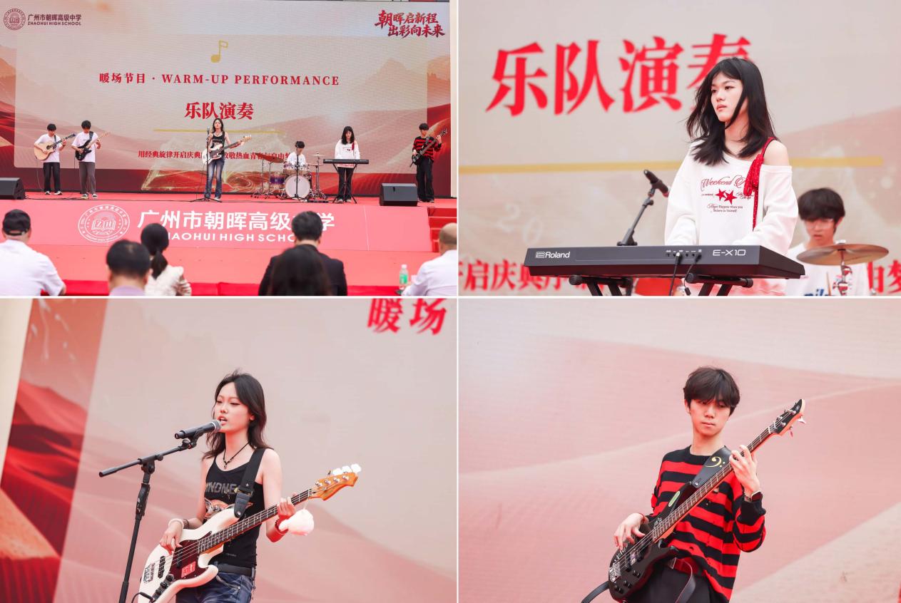 揭牌当日,校园内礼乐悠扬、瑞狮欢腾,处处洋溢着庄重热烈的氛围。各级教育主管部门领导、行业资深嘉宾、五十余家主流媒体代表、家长代表及全校师生齐聚一堂,共同见证这一教育盛事。活动伊始,现场循环播放学校宣传片,乐队、弦乐、舞蹈与醒狮表演轮番上阵,以灵动昂扬的姿态展现学校蓬勃朝气,为盛典拉开华美序幕。随后,庄严的升旗仪式正式举行,全体人员肃立注目、高唱,,浓厚的家国情怀与教育初心在现场交融,奠定盛典庄重基调。