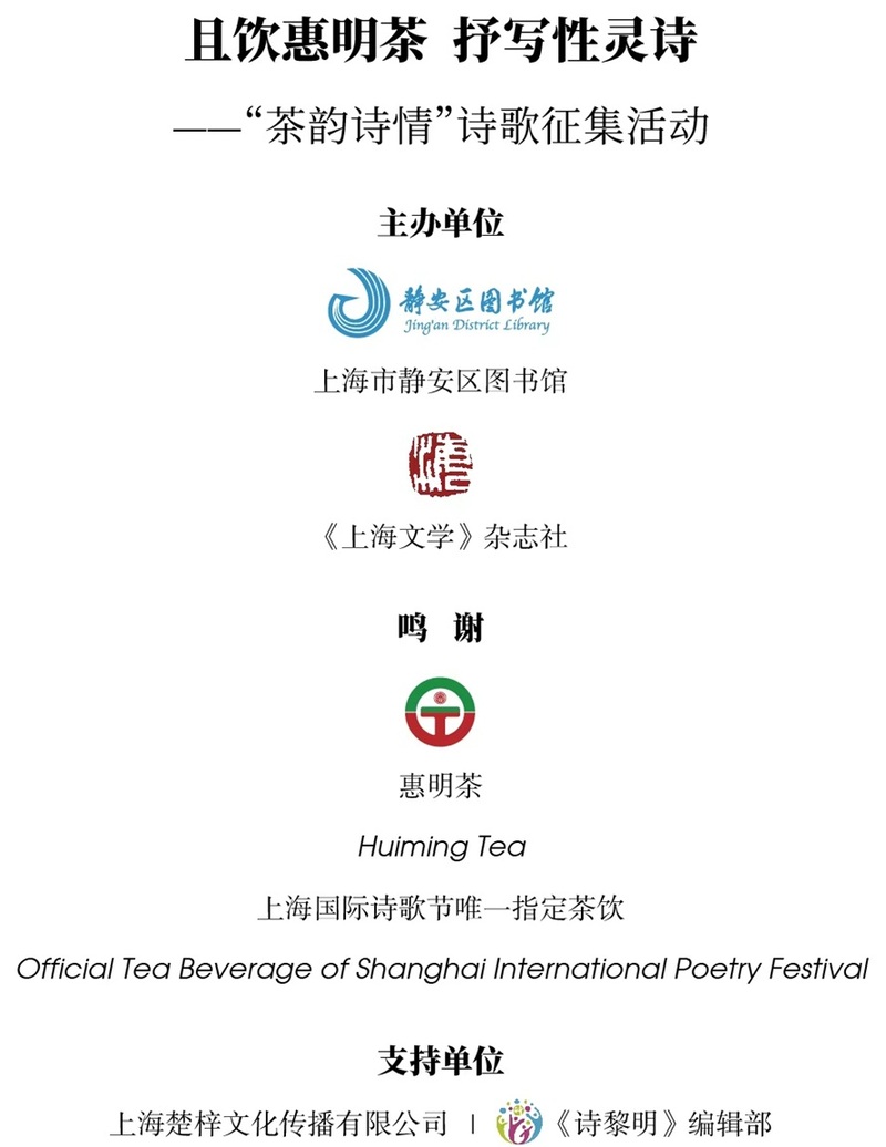 为传承和弘扬中华茶文化,挖掘茶文化的精神内涵,以诗歌之美诠释茶之韵味,让更多人感受茶文化与诗歌艺术交融的独特魅力,静安区图书馆与《上海文学》杂志社携手举办“茶韵诗情”诗歌征集活动,诚邀全国诗歌爱好者以笔为媒,以诗咏茶,共绘茶与诗的美好画卷。